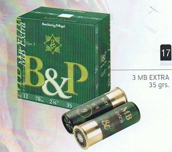 Cartucho B&P 3MB EXTRA de calibre 12/70 con carga de 35 gramos de plomo. Vaina de 70mm y culatín de 16mm, ideal para caza menor y media como codorniz, tórtola, faisán y liebre. Presentación en cajas de 25 cartuchos. Disponible en números de perdigón del 5 al 10.