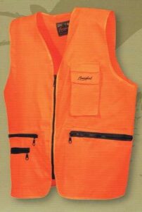 Chaleco de seguridad naranja fosforito de la línea Basic de Benisport, diseñado para garantizar máxima visibilidad durante la caza. Fabricado con tejido homologado EN-471 de alta visibilidad. Incluye bolsillos con cierre hermético mediante cremalleras, porta-balas elástico interior y bolsillo específico para emisora. Disponible en tallas de 7 a 11.