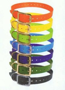 Collar POLYTEC de poliuretano de 25 mm de ancho para perros de caza. Completamente ajustable de 10 a 70 cm de longitud. Material resistente y fácil de limpiar que no absorbe malos olores. Se puede escribir sobre él para identificación y el sobrante se corta fácilmente. Disponible en varios colores.
